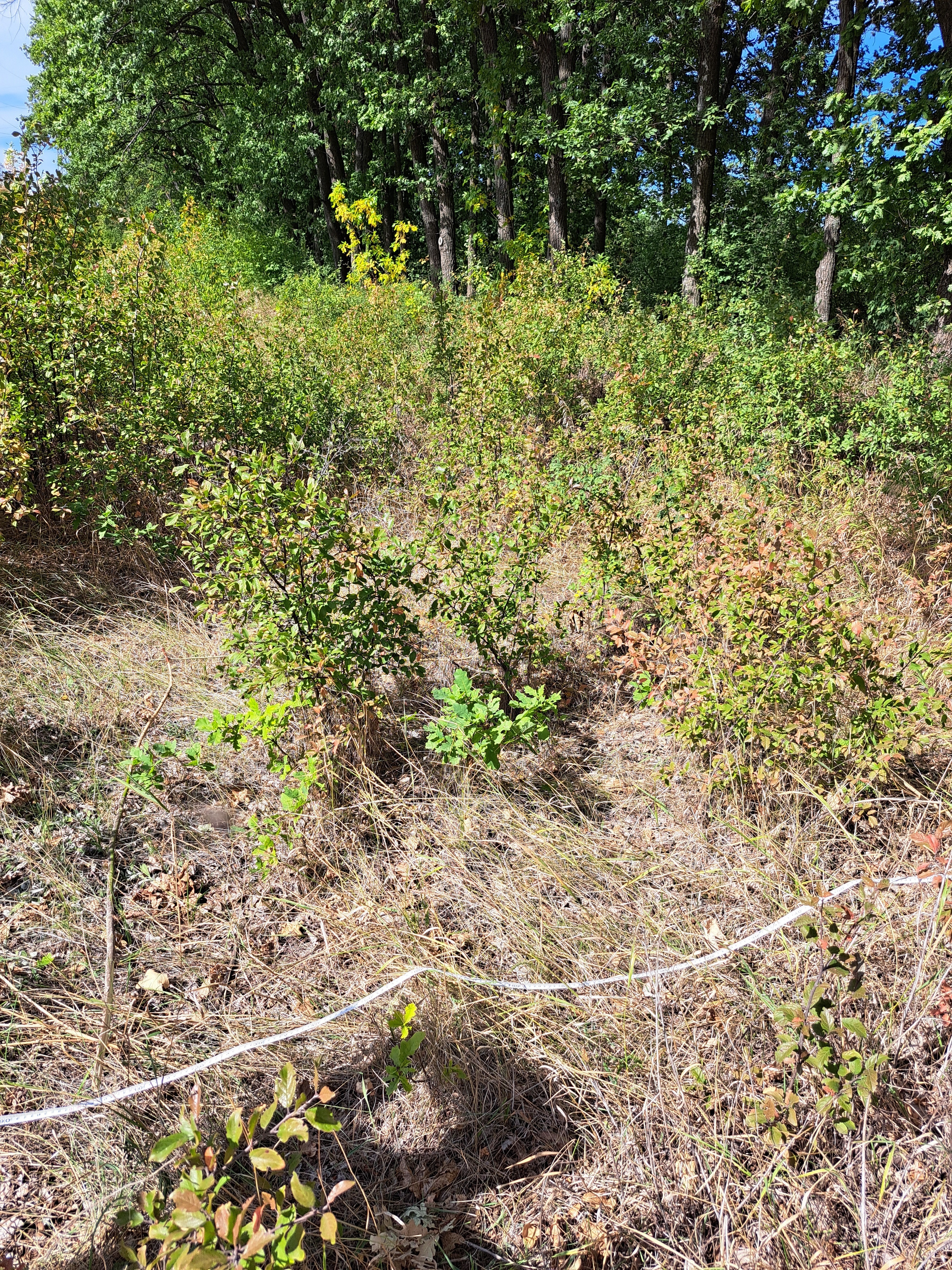 Природне поновлення дуба червоного, клена гостролистого та сливи колючої під кроною дуба червоного, а також природне поновлення сливи колючої на межі парку та лісосмуги