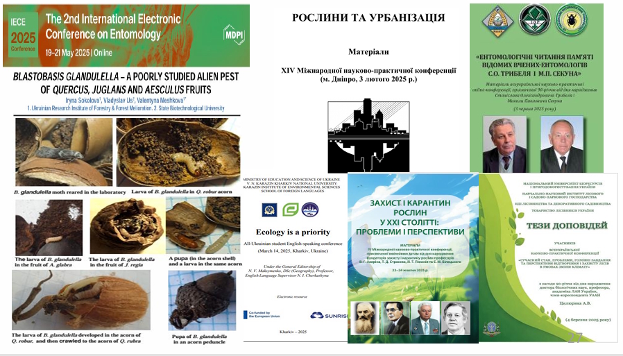 Побудовано карти змін питомої площі осередків, кількості, частоти й тривалості спалахів зеленої дубової листовійки за областями України у 1978–2001 і 2002–2025 рр. Проаналізовано динаміку стану дерев сосни на пробних площах після випуску ентомофага Thanasimus formicarius в осередки короїдів у Чернігівській, Сумській і Харківській областях. Виявлено особливості динаміки сезонного розвитку ясенової смарагдової вузькотілої златки. Тривають дослідження маловідомих шкідників жолудів Blastobasis glandulella та Andricus foecundatrix.