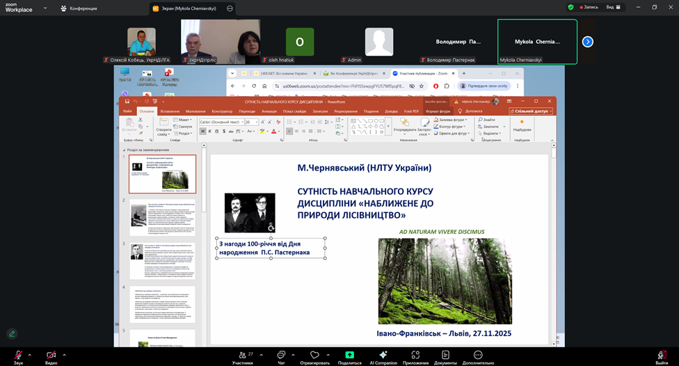 27 листопада в Українському науково-дослідному інституті гірського лісівництва ім. П.С. Пастернака відбулася міжнародна науково-практична конференція «Основні завдання лісівничої науки щодо ведення лісового господарства на засадах наближеного до природи лісівництва в гірських лісах Українських Карпат». Захід проведено з нагоди 100-річчя від дня народження видатного вченого-лісівника Петра Степановича Пастернака, а також з метою підсумування досліджень у Карпатському регіоні з урахуванням наукових напрацювань за понад 60-річну діяльність установи та визначення нових перспективних напрямів робіт.