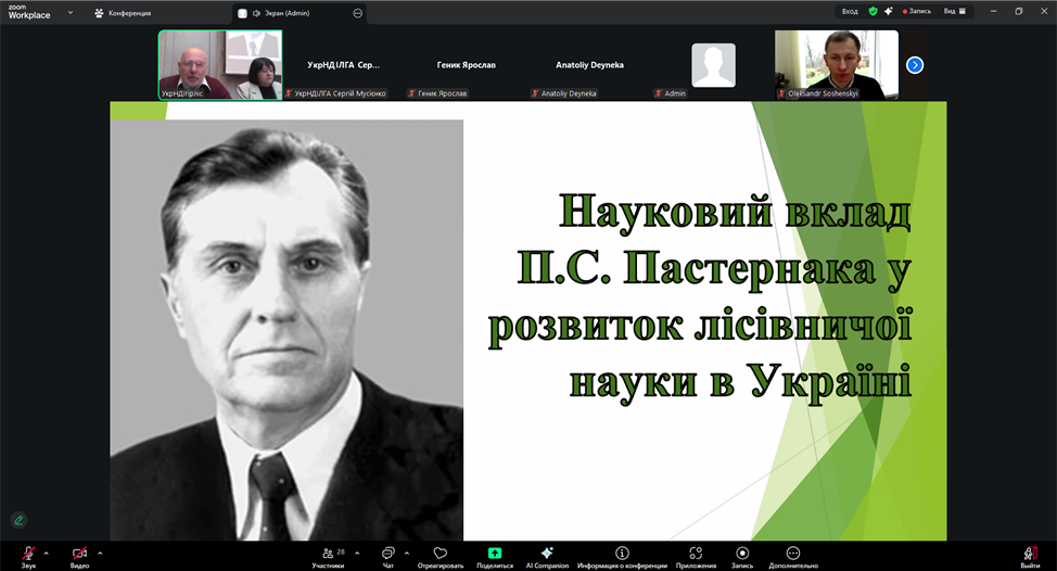 Т. в. о. директора УкрНДІгірліс Мар’яна Сіщук та науковці лабораторій і відділів Інституту розповіли про науковий супровід ведення лісового господарства в Українських Карпатах й пригадали численні здобутки та розробки професора П.С. Пастернака, завдяки яким було встановлено зв’язки між типами ґрунтів і продуктивністю лісів, проведено масові роботи із залісення кам’янистих розсипів у горах тощо.