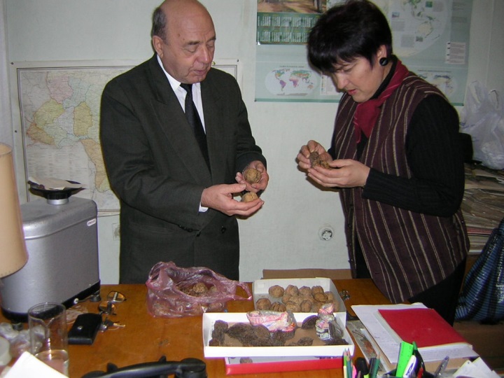 П.П. Бадалов проводить екскурсію в парку «Веселі Боковеньки» та демонструє плоди найкращих форм горіхів своїй колезі Т.В. Орловській