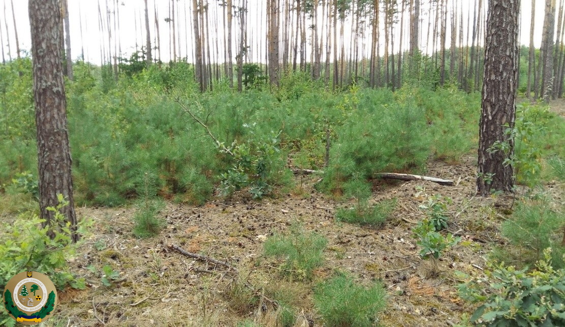 У 2015 році в Батуринському лісництві Ніжинського надлісництва було закладено дослід в стиглому сосняку свіжого дубово-соснового субору, а здійснення рубки запроєктовано за три прийоми. Для дослідження успішності лісовідновлення в сосняку формували «вікна» відновлення різного розміру – діаметром 0,5, 0,7, 1,0, 1,5 середньої висоти деревостану. Вдовж межі кожного «вікна» також закладали смугу лісовідновлення шириною вдвічі менше його діаметра. У перший прийом в рубку призначали всі дерева, які росли в межах майбутнього «вікна». У лісовідновній смузі вилучали сухостійні, фаутні, ослаблені дерева всіх порід, а також дерева берези, осики, дуба та сосни з розлогими кронами, знижуючи повноту до 0,4–0,5 (за принципами рівномірно-поступової рубки). У наступний прийом «вікна» розширювали на половину від їхнього початкового розміру. Усього на ділянці площею близько 7 га було сформовано 22 «вікна» різного діаметру відповідно до середньої висоти деревостану. У «вікнах» було проведено заходи сприяння природному поновленню шляхом розпушування ґрунту культиватором або прокладання борозен плугом. Упродовж наступних 5 років після першого прийому групово-поступової рубки інтенсивністю 10 % від запасу та заходів сприяння природному поновленню в сформованих «вікнах» відбувався інтенсивний процес природного лісовідновлення. Густота підросту сосни становила 16–57 тис. шт./га самосіву – 1,5–13. На ділянках переважав 5-річний підріст, що з’явився в перший рік після першого прийому групово-поступової рубки. Кількість підросту сосни молодшого віку була значно меншою. Поновлення поповнювалося 1–2-річним самосівом сосни і з часом формувалася різновікова структура молодняка. Ця різновіковість збільшувалася також за рахунок більш старшого підросту сосни (9–15 років), який залишили з попереднього (піднаметового) поновлення. Також з’являлися екземпляри дуба звичайного насіннєвого та порослевого походження, берези повислої, осики, верби козячої. Найкращими для природного поновлення сосни виявилися «вікна» діаметром 1,0 та 1,5 середньої висоти деревостану. Зі збільшенням розміру «вікон» підвищується освітленість і збільшується кількість природного поновлення дуба звичайного (0,1–0,2 тис. шт./га) і м’яколистяних порід (0,4–6,1 тис. шт./га). Вони дещо пригнічують підріст і самосів сосни, який потребує відповідного догляду. В результаті перед призначенням другого прийому групово-поступової рубки у «вікнах» сформувалися соснові молодняки з домішкою м’яколистяних порід зімкнутістю 0,8–1,0.