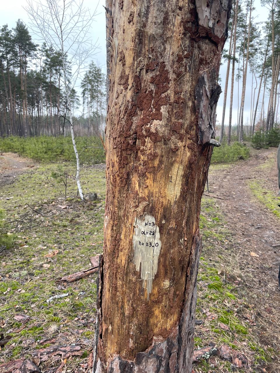 На території Клавдієвського та Дібровського лісництв фахівці ДП «Клавдієвська лісова науково-дослідна станція» та спеціалізованого лісозахисного підприємства «Київлісозахист» провели обстеження соснових насаджень, призначених під вибіркові санітарні рубки. У ході робіт здійснено детальну оцінку санітарного стану насаджень із метою визначення доцільності проведення лісогосподарських заходів, спрямованих на їх оздоровлення й підвищення стійкості.