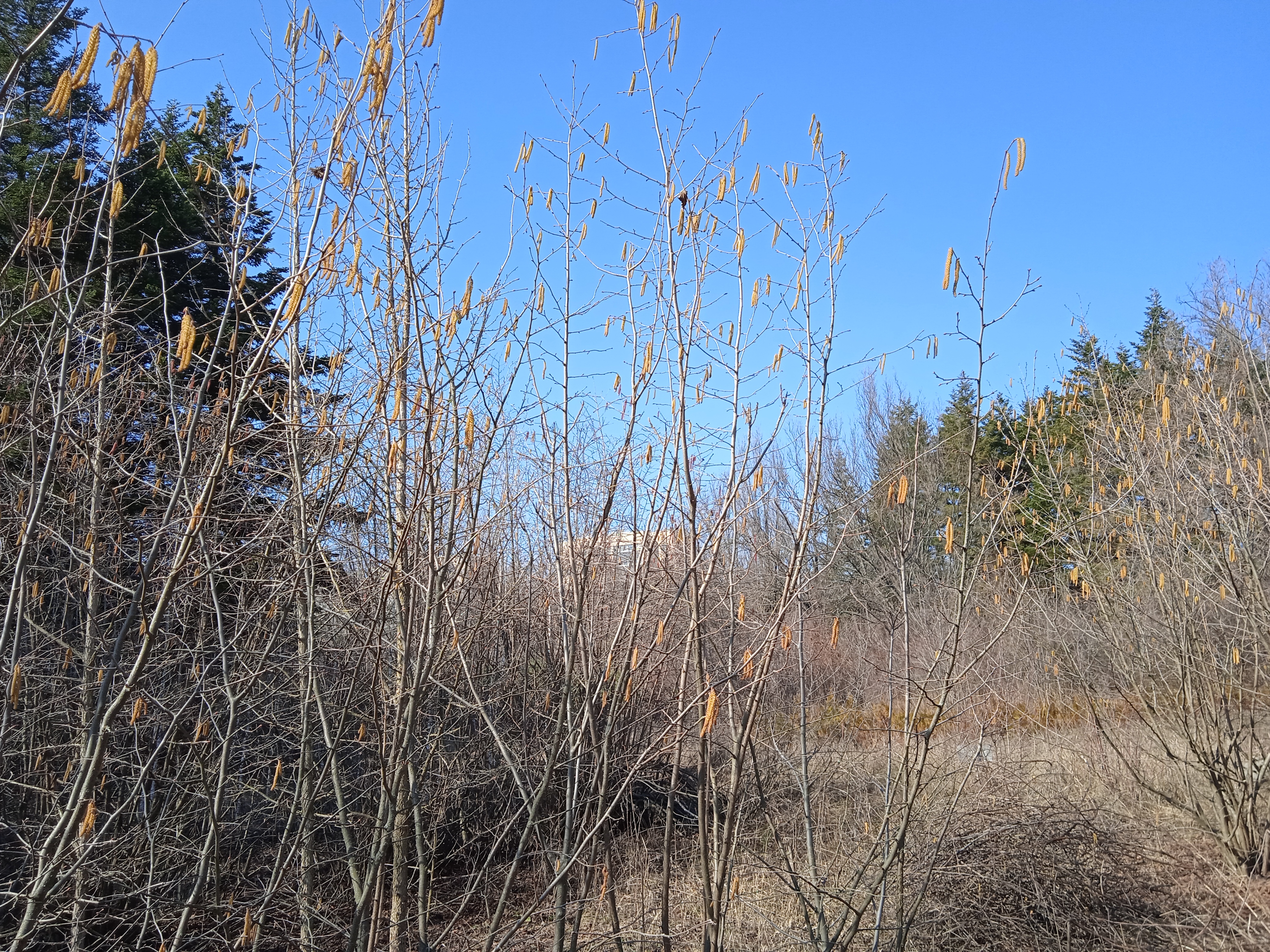 Цвітіння фундука (Corylus maxima) на території дендропарку Державного біотехнологічного університету (ДБТУ)