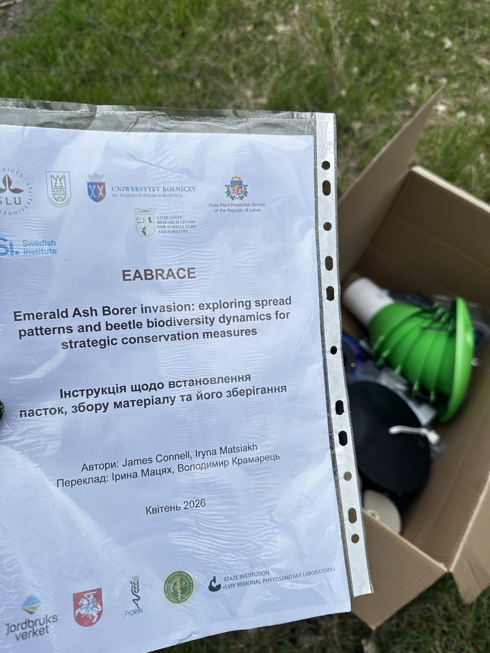 Багатолійкові пастки різних кольорів дають змогу ефективно відловлювати широкий спектр комах-ксилофагів, зокрема представників родин короїдів, златок і вусачів. Особливу увагу приділено виявленню ясенової смарагдової вузькотілої златки (Agrilus planipennis). Проведені огляд і визначення санітарного стану насаджень є черговим щорічним етапом у низці досліджень в рамках міжнародного проєкту EABRACE, спрямованого на оцінювання динаміки біорізноманіття комах-ксилофагів до та під час інвазії ясенової смарагдової вузькотілої златки (Agrilus planipennis), а також на моніторинг стану популяції цього небезпечного інвазійного карантинного виду. Важливим також є виявлення стійких екземплярів дерев ясена.