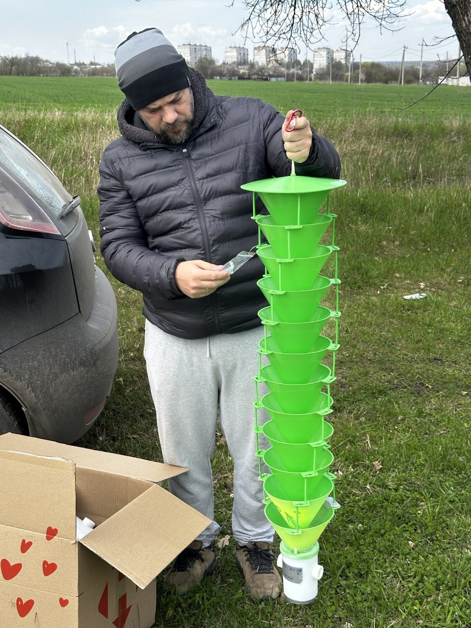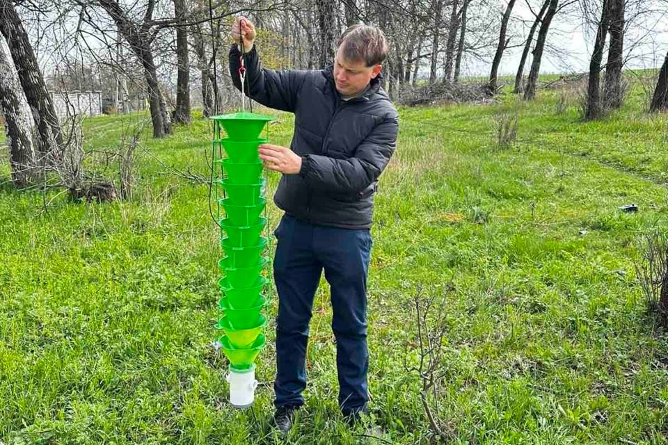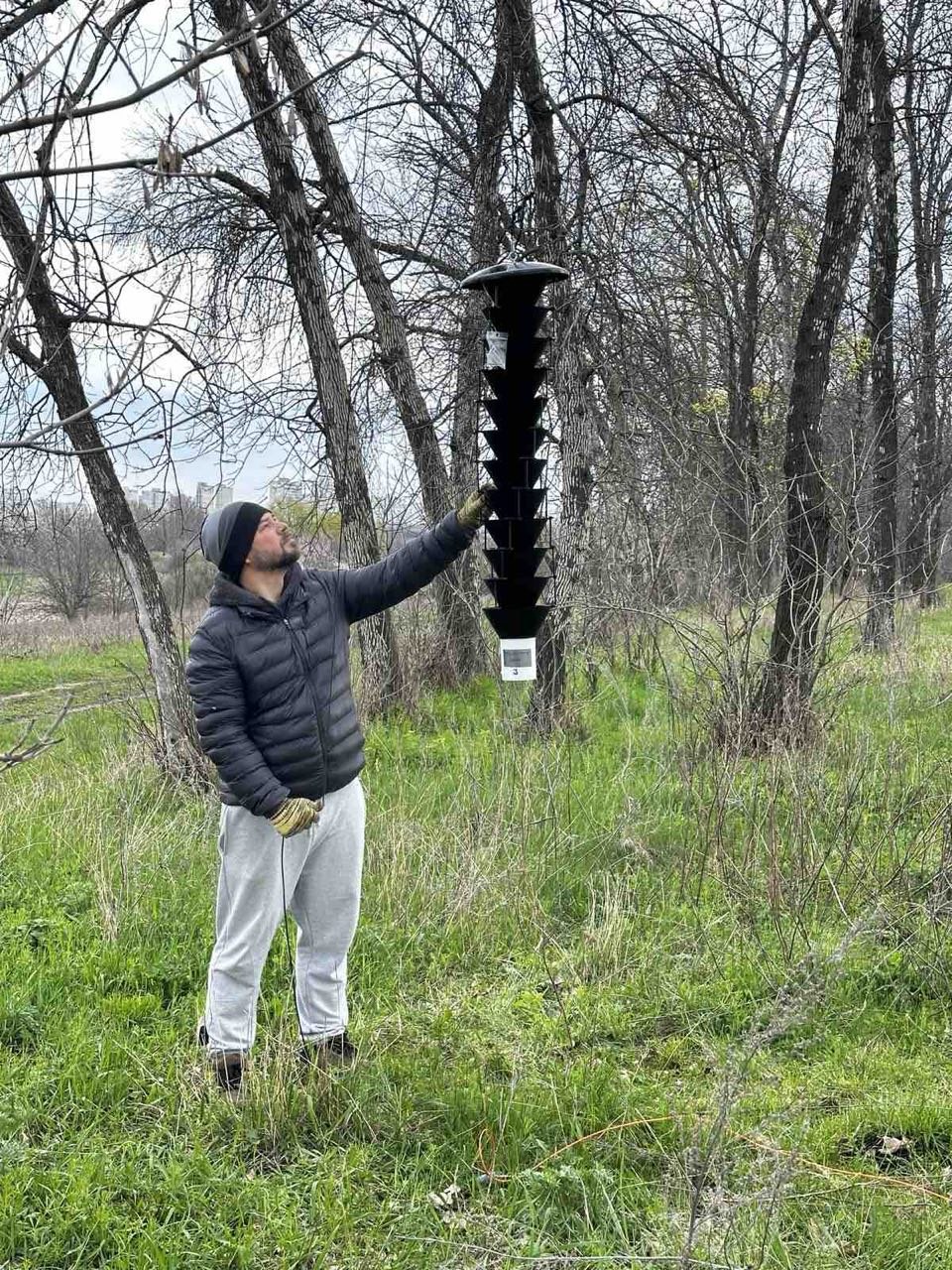 Дослідження динаміки популяцій лісових комах-ксилофагів і прогнозування їхнього розвитку мають важливе значення для оцінювання їхньої ролі як потенційних переносників бактеріальних і грибних патогенів. Тож, у третій декаді квітня в.о. завідувача відділу ентомології, фітопатології та фізіології УкрНДІЛГА, кандидат с.-г. наук, старший дослідник Юрій Скрильник та аспірант Державного біотехнологічного університету агрономічного факультету спеціальності «Захист і карантин рослин» Владислав Ус провели встановлення пасток в лісосмугах у передмісті Харкова.
