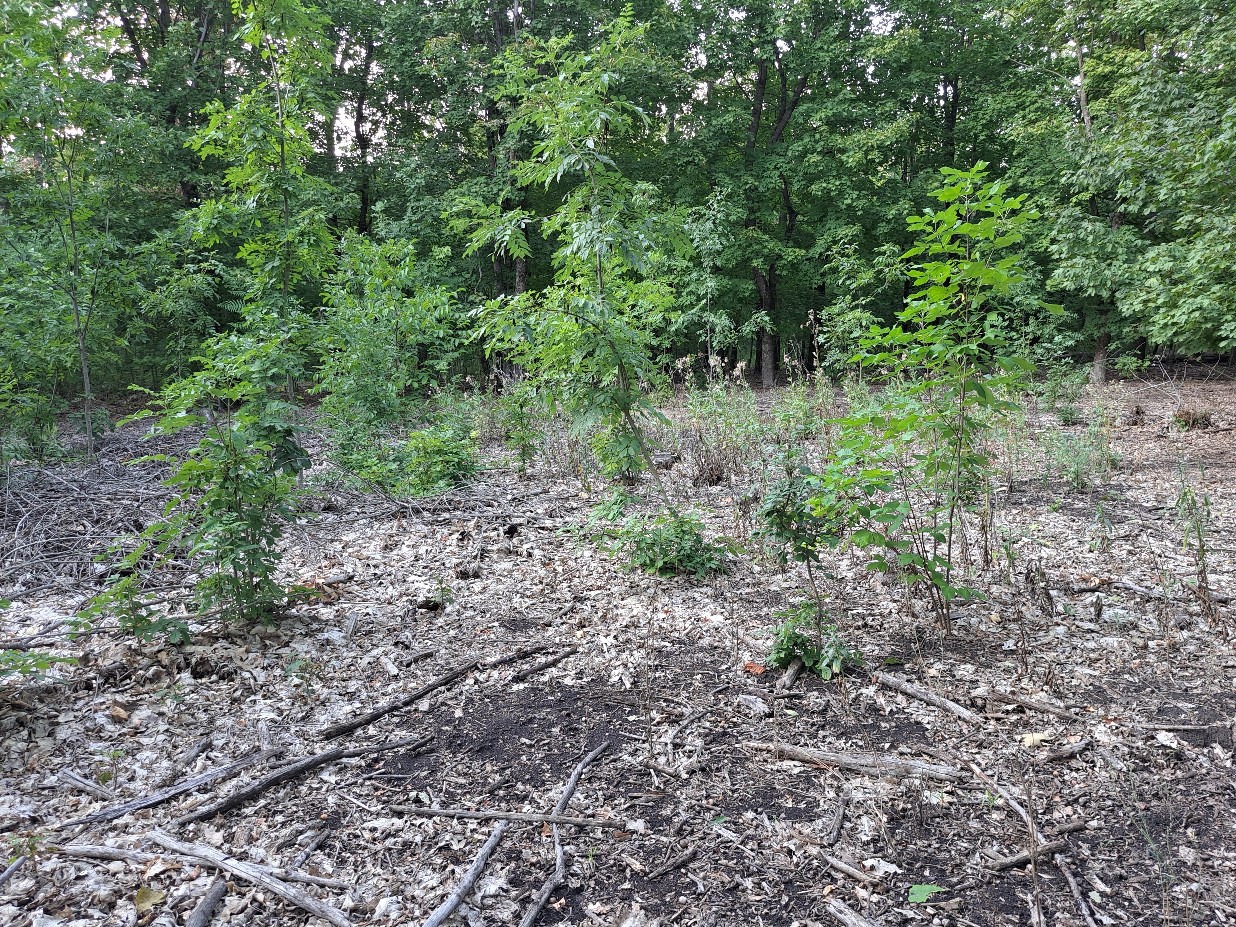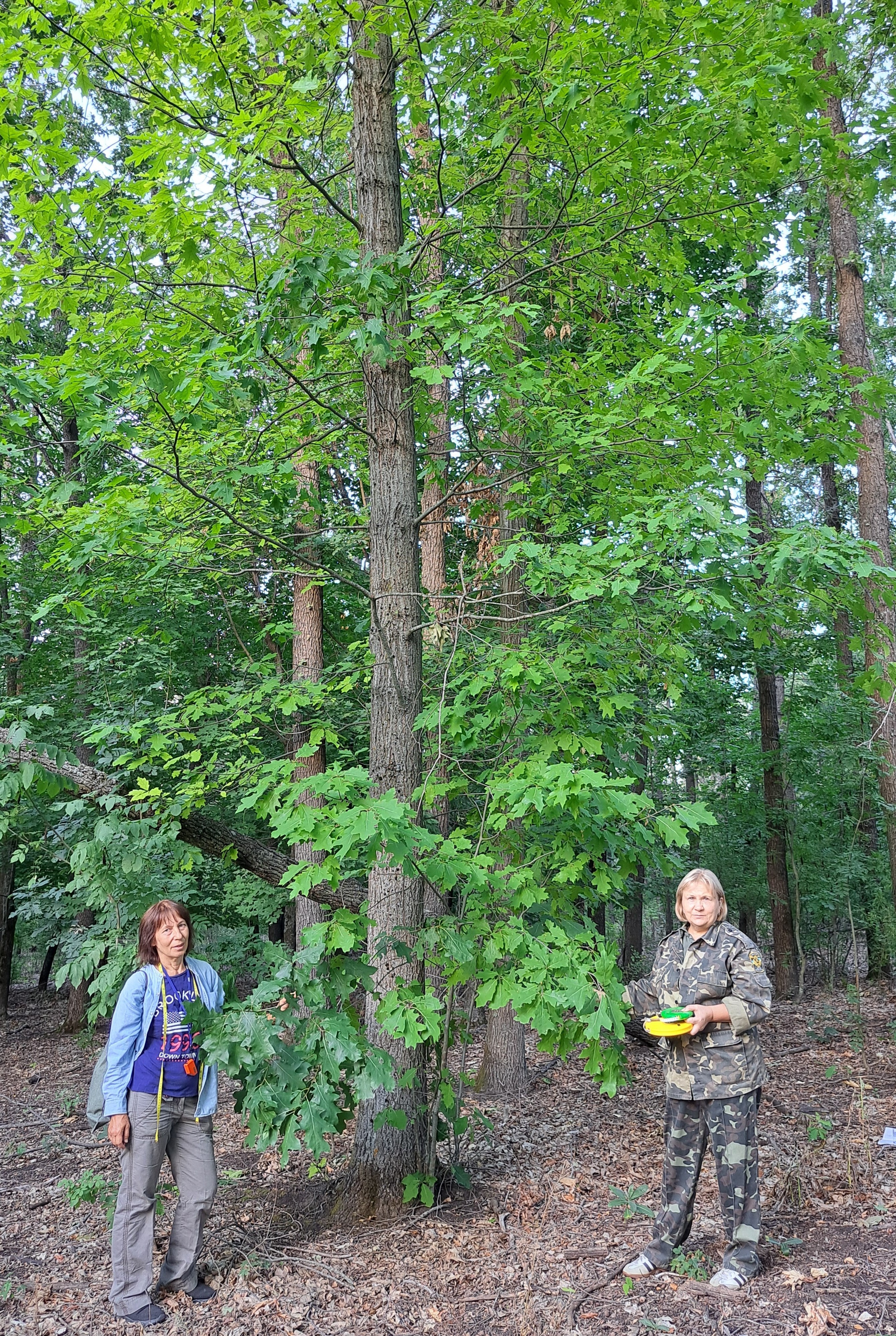 Лариса Терещенко та Галина Підтикана фіксують природне поновлення ясена звичайного під наметом дуба червоного