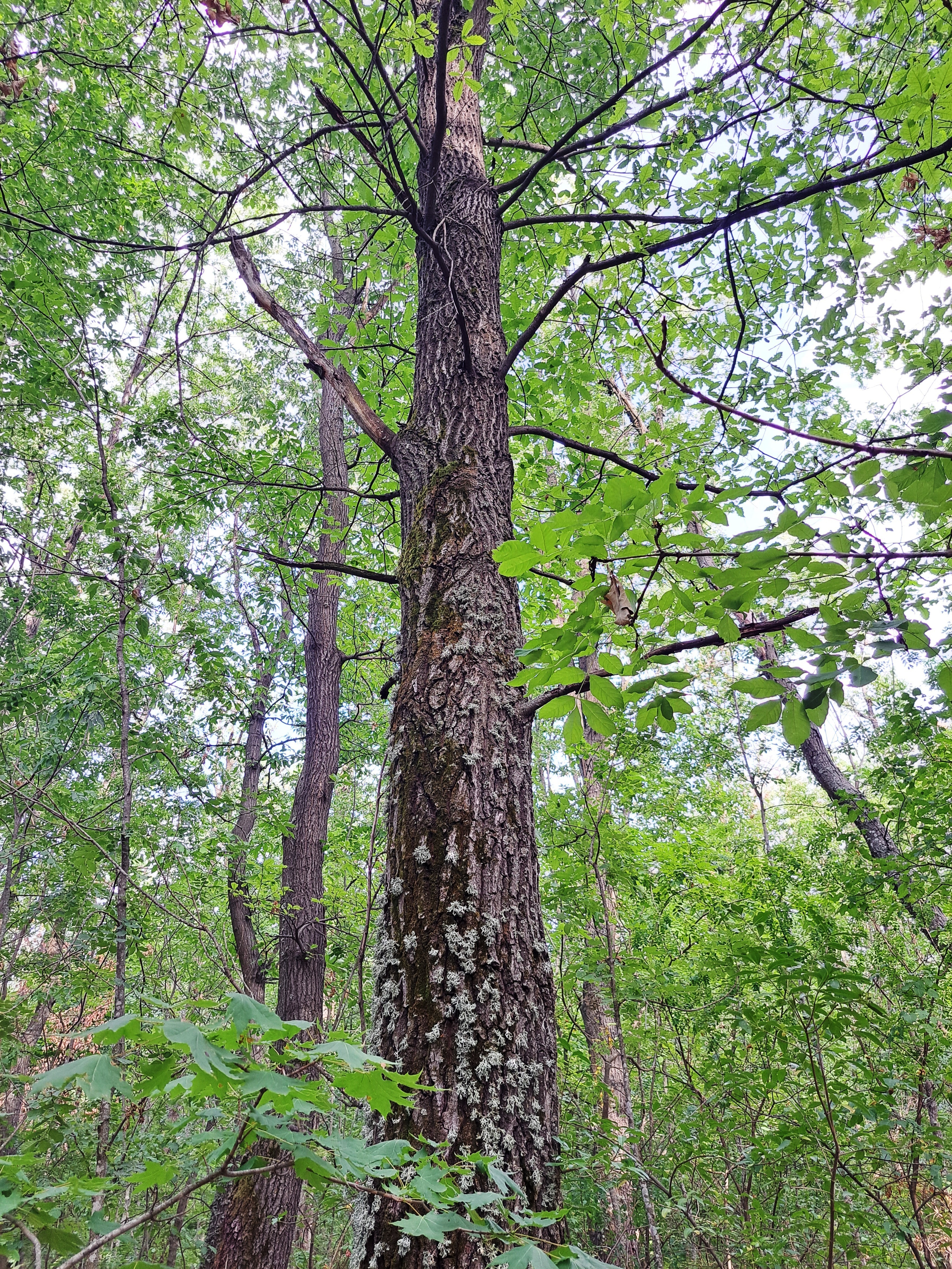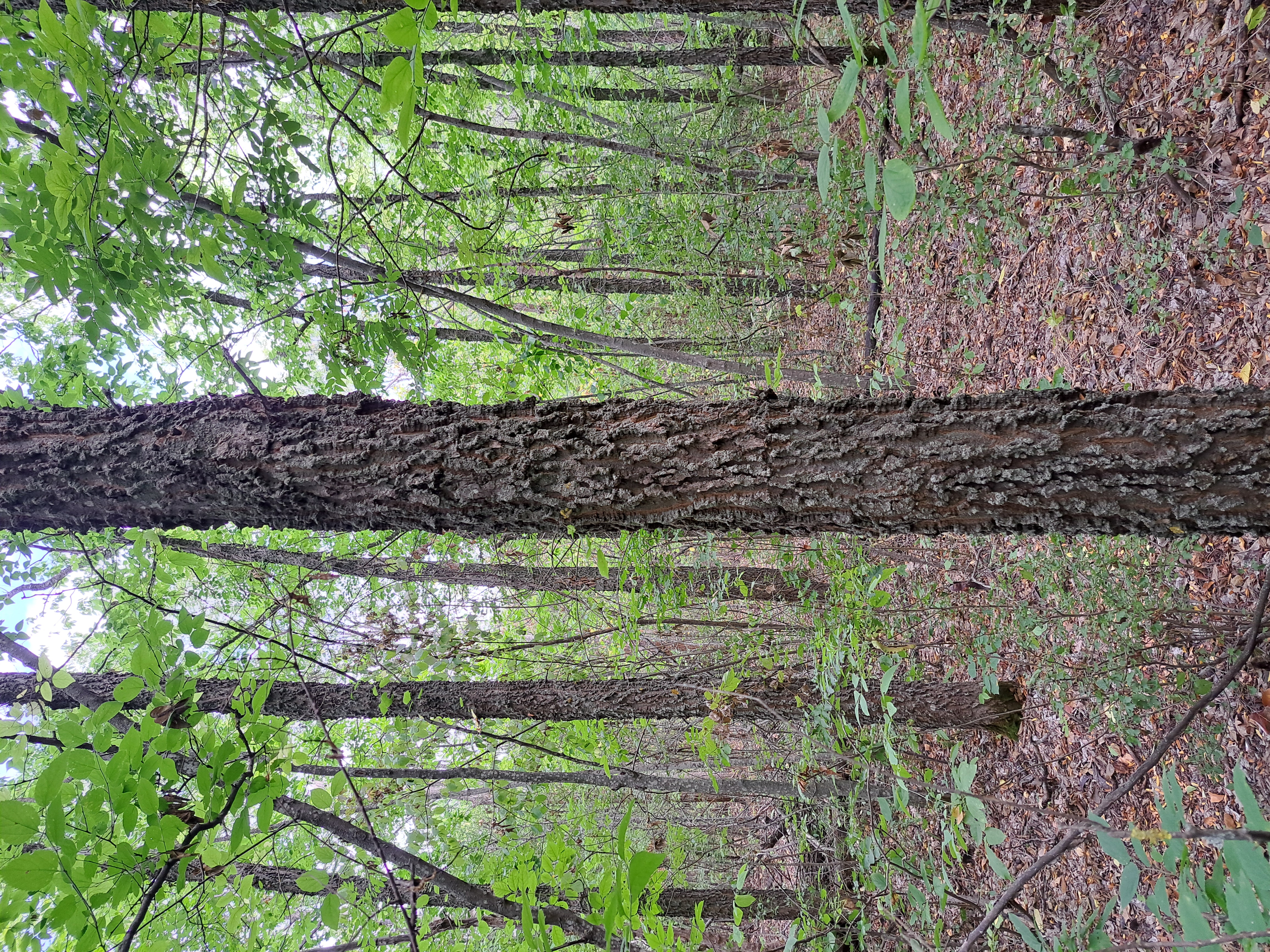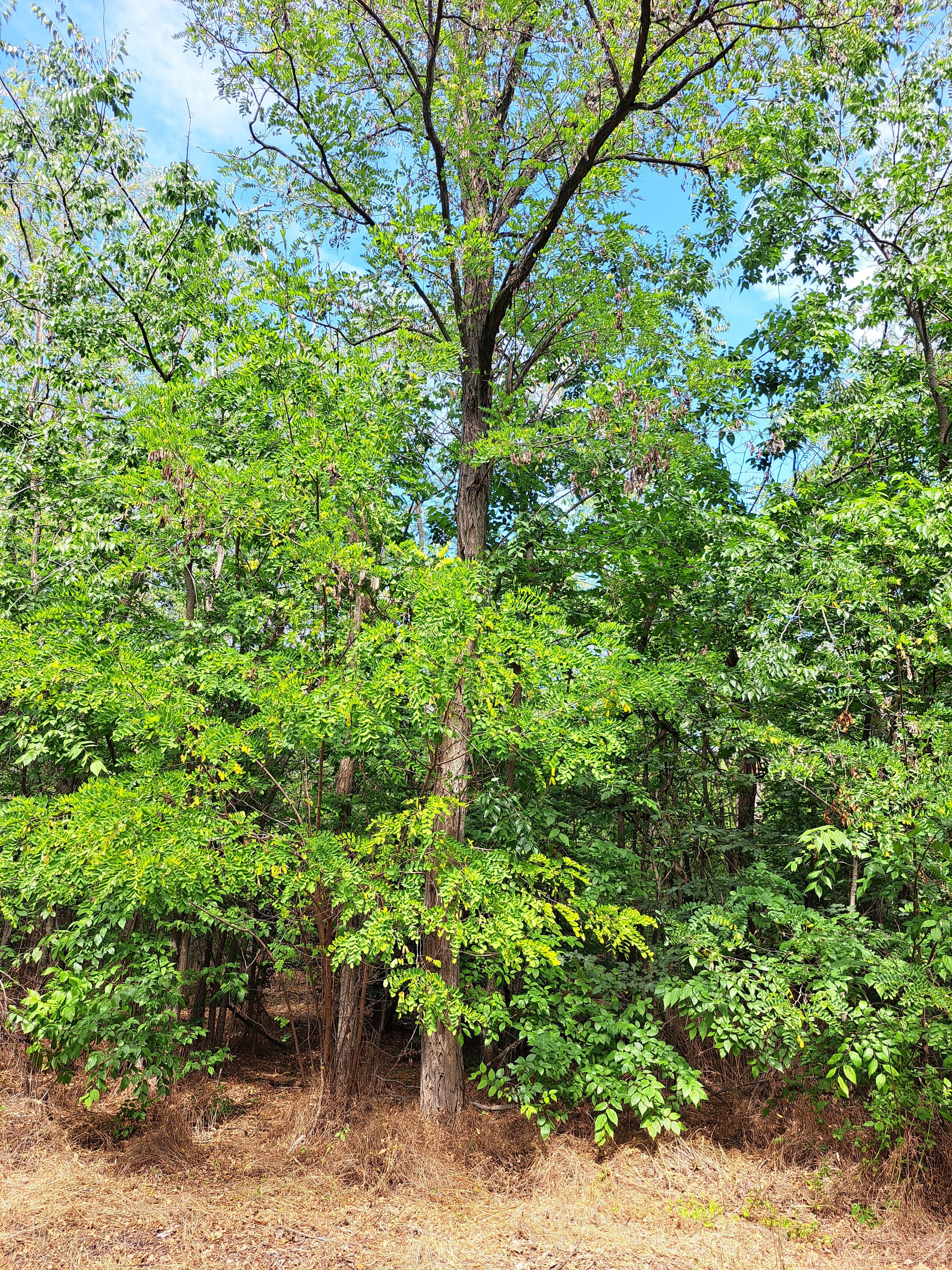 Робінія звичайна (Robinia pseudoacacia L.), яка походить із південно-східної частини Північної Америки, була інтродукована в Україну у 80-х роках XVIII ст. Вид характеризується твердою ядровою деревиною, яку використовують у будівництві, для виготовлення меблів і декоративних виробів; добрий медонос. Світлолюбний, швидкорослий вид, невибагливий до родючості ґрунтів, витримує засоленість, збагачує ґрунт азотом. На території Центру перші дерева були висаджені на початку ХХ століття; в поточному році було обстежено два насадження робінії віком 67 і 70 років. Стан дерев на ділянках задовільний; через тривалі посушливі періоди останніх років до 30 % дерев наразі з сухими гілками і до 10 % — суховершинні. Трапляються дерева з прямими стовбурами. В обстежених насадженнях самосів робінії 1–8-річного віку є нечисленним; більш старший підріст (9–15 рр.) в одному насадженні відсутній, а в іншому (після проведеної санітарної рубки) його інвазійна активність висока. У суміжних деревостанах поновлення робінії практично відсутнє з навітряного боку та у випадку наявності щільного надґрунтового покриву.