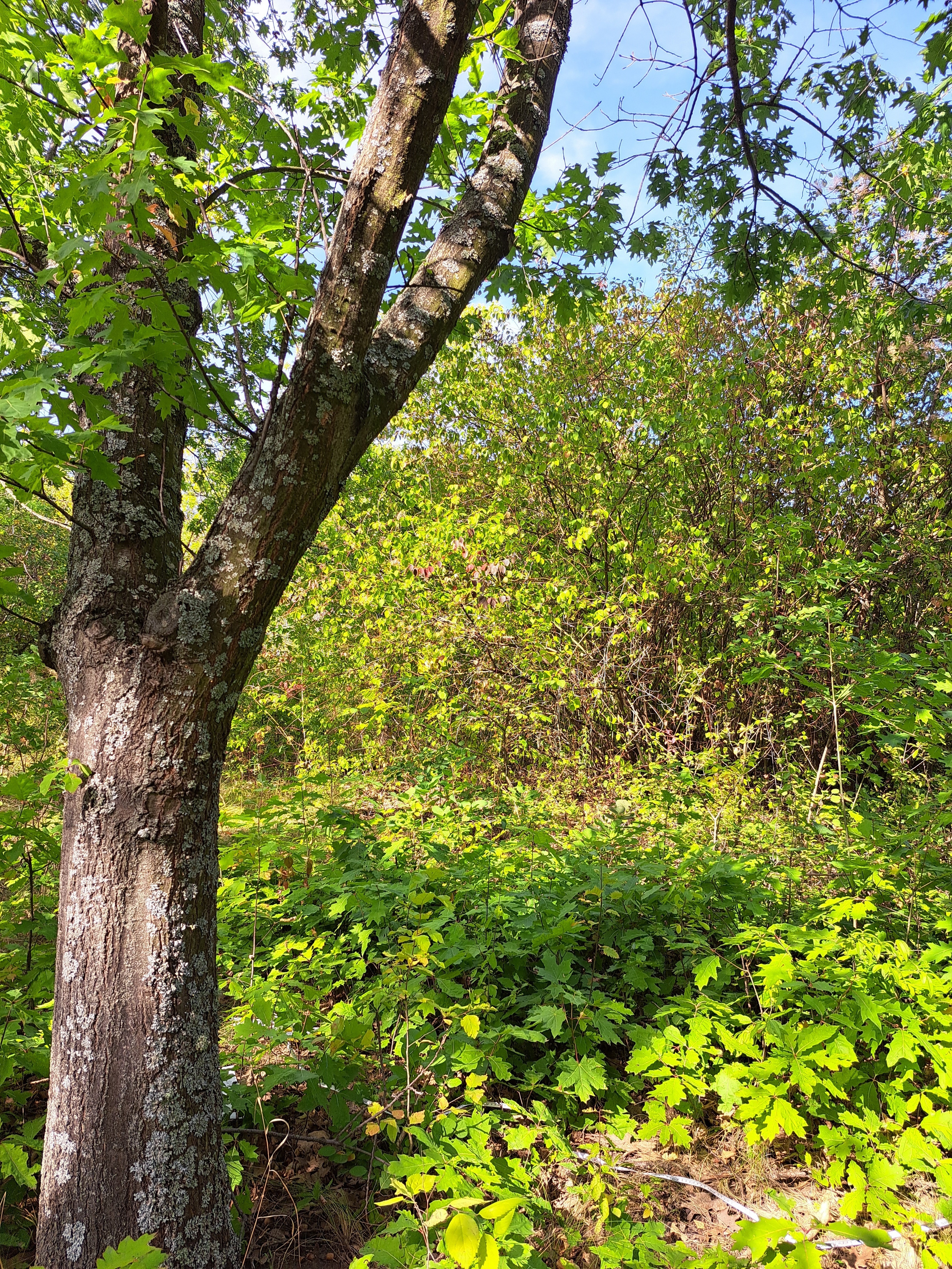 Природне поновлення дуба червоного, клена гостролистого та сливи колючої під кроною дуба червоного, а також природне поновлення сливи колючої на межі парку та лісосмуги