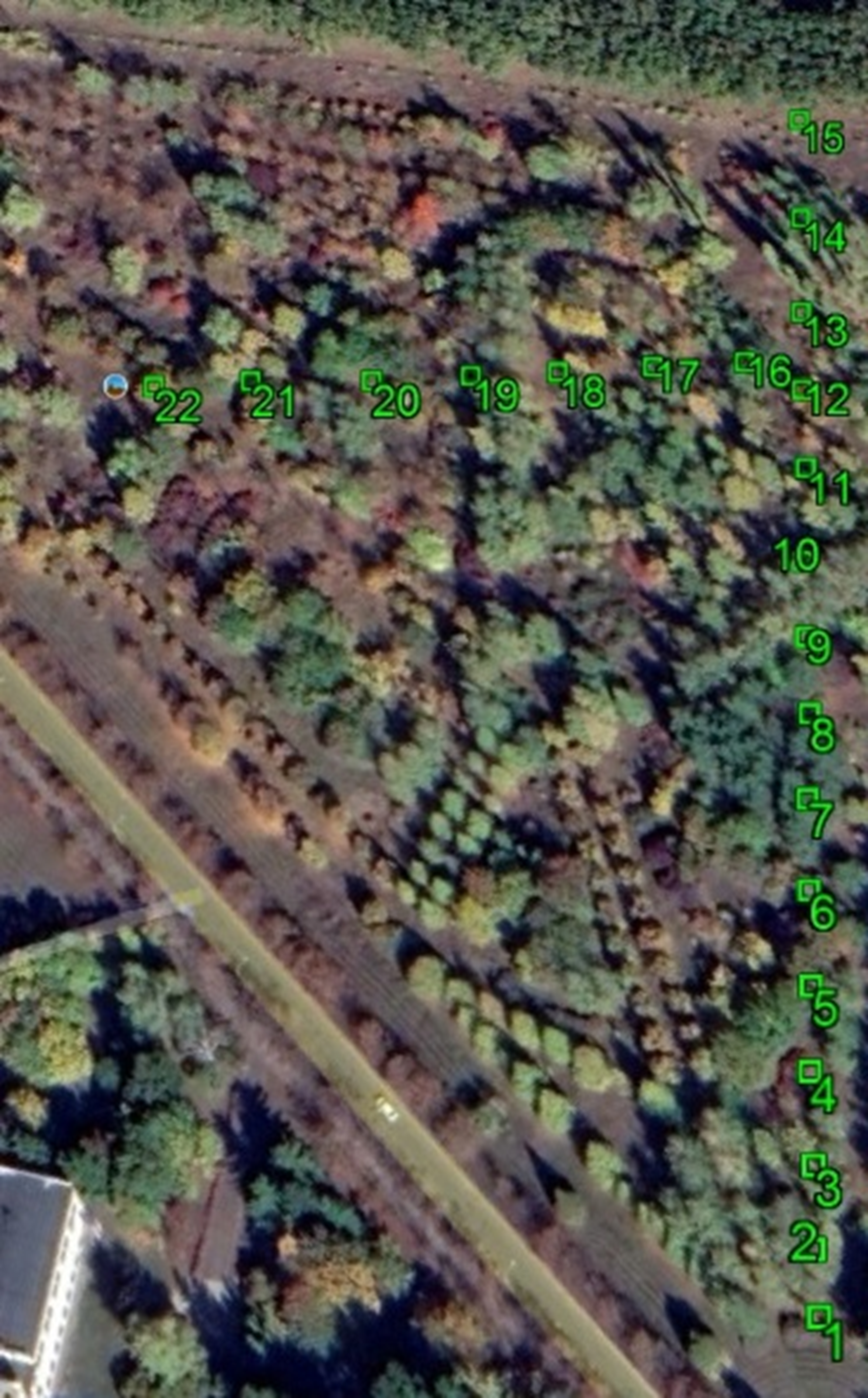 У вересні співробітниками УкрНДІЛГА (відділи селекції, генетики та біотехнології, а також лісівництва та економіки лісового господарства) та ДП «Харківська ЛНДС» було досліджено особливості природного відновлення аборигенних та інтродукованих видів деревних рослин на території парку Ветеранів Державного біотехнологічного університету (ДБТУ). Парк Ветеранів ДБТУ (тоді – Харківського аграрного університету ім. В. В. Докучаєва) був створений навесні 1996 року за ініціативи викладачів кафедри агролісомеліорації та лісівництва й безпосередньо її завідувача, професора Бориса Федоровича Остапенка (1922–2006). Окрім викладачів і співробітників кафедри, в роботах зі створення та догляду також брали участь й студенти університету різних спеціальностей. Паркова зона має форму прямокутного трикутника площею 6,3 га, у ньому висаджено 30 видів дерев і 20 видів чагарників. Детальна інформація про парк, зокрема його видовий склад, наведена в книзі І.Й. Ситника «Парки Харківського національного аграрного університету ім. В.В. Докучаєва» (2017). У перші роки після заснування в дендропарку проводили інтенсивні догляди, зокрема – викошування трави та самосіву дерев, однак в останні 5 років вони не проводилися.