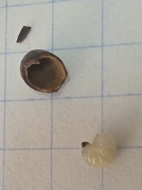 Недорозвинений жолудь із личинкою горіхотворки всередині