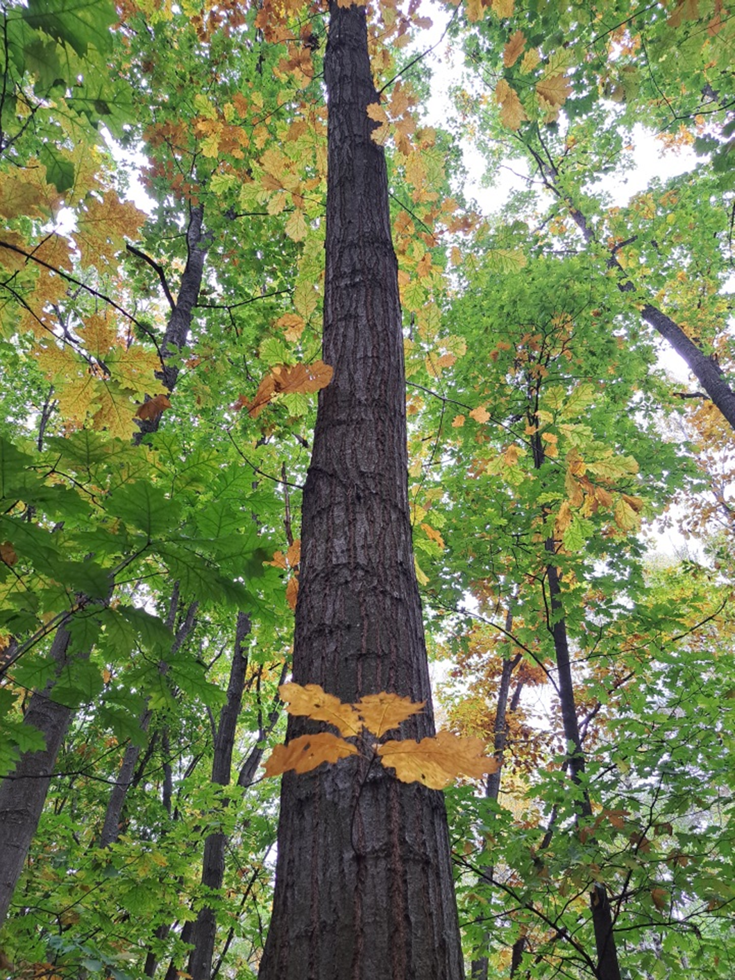 У жовтні поточного року співробітниками відділу селекції, генетики та біотехнології УкрНДІЛГА (Лось С. А.) та ДП «Клавдієвська ЛНДС» (Шлончак Г. А та Митроченко В. В.) було здійснено обстеження насаджень дуба червоного в Старопетрівському й Першотравневому лісництвах станції. При цьому було застосовано комплексний підхід до оцінювання насаджень даного виду. Під час польових досліджень було визначено таксаційні та селекційні показники Quercus rubra L. на тимчасових пробних площах. Також було проведено повний перелік природного поновлення всіх деревних видів на облікових майданчиках площею 2×2 м, розташованих через кожні 10 м вздовж трансект під наметом деревостанів та в суміжних виділах.