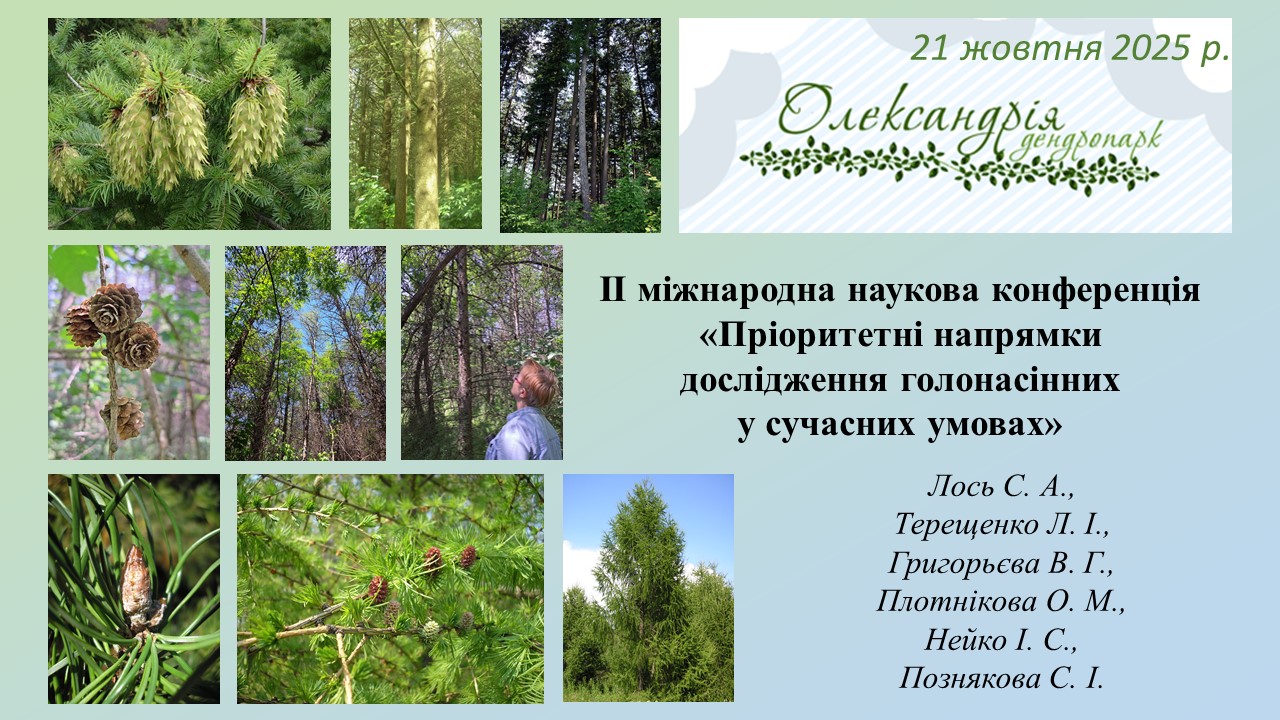 Наприкінці жовтня Відділенням загальної біології Національної академії наук України (НАН України), Радою ботанічних садів та дендропарків України, державним дендропарком «Олександрія» НАН України, а також Національним ботанічним садом (інститутом) імені О. Чуботару (республіка Молдова) та Білоцерківським національним аграрним університетом було проведено II міжнародну наукову онлайн-конференцію «Пріоритетні напрямки дослідження Голонасінних у сучасних умовах», присвячену пам’яті доктора біологічних наук С.І. Галкіна. Захід відбувся в державному дендропарку «Олександрія» (м. Біла Церква, Київська обл.)
