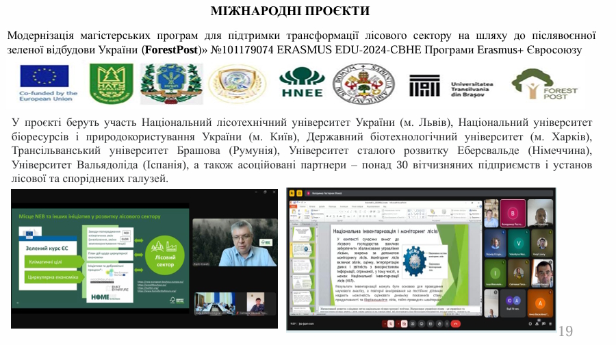 Члени Східного відділення ЛАНУ беруть участь у міжнародних проєктах. Серед них «Модернізація магістерських програм для підтримки трансформації лісового сектору на шляху до післявоєнної зеленої відбудови України (ForestPost)» Програми Erasmus+ Євросоюзу (Державний біотехнологічний університет разом із іншими університетами України, Румунії, Німеччини, Іспанії, підприємствами лісової та споріднених галузей). У конференції в рамках проєкту взяли участь академіки ЛАНУ С. П. Распопіна, В. П. Пастернак, В. Л. Мєшкова, член.-кор. ЛАНУ Ю. В. Карпець.