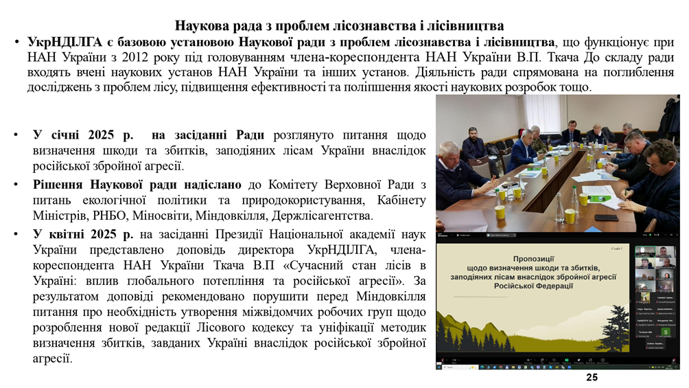 Під головуванням віце-президента ЛАН України, члена-кореспондента НАН України та НААН В. П. Ткача Наукова рада з проблем лісознавства і лісівництва при НАН України в поточному році розглянула питання щодо визначення шкоди та збитків, заподіяних лісам України внаслідок російської збройної агресії.