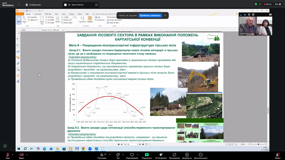 Під час пленарного засідання науковці провідних наукових установ (УкрНДІЛГА, НУБіП, НЛТУ, Карпатський національний університет) доповіли на актуальні теми щодо досліджень у галузі лісового господарства в сучасних умовах. Так, від УкрНДІЛГА з доповіддю «Моніторинг лісів в Україні: від ICP Forests до національної інвентаризації лісів» виступив гол.н.с. відділу інвентаризації лісів, моніторингу, сертифікації та лісовпорядкування, д.с.-г.н., проф. В.П. Пастернак. Всі представлені матеріали та результати робіт науковців викликали жваві дискусії та обговорення присутніх. За матеріалами конференції згодом буде опубліковано тези доповідей, статті та створено електронну версію матеріалів.