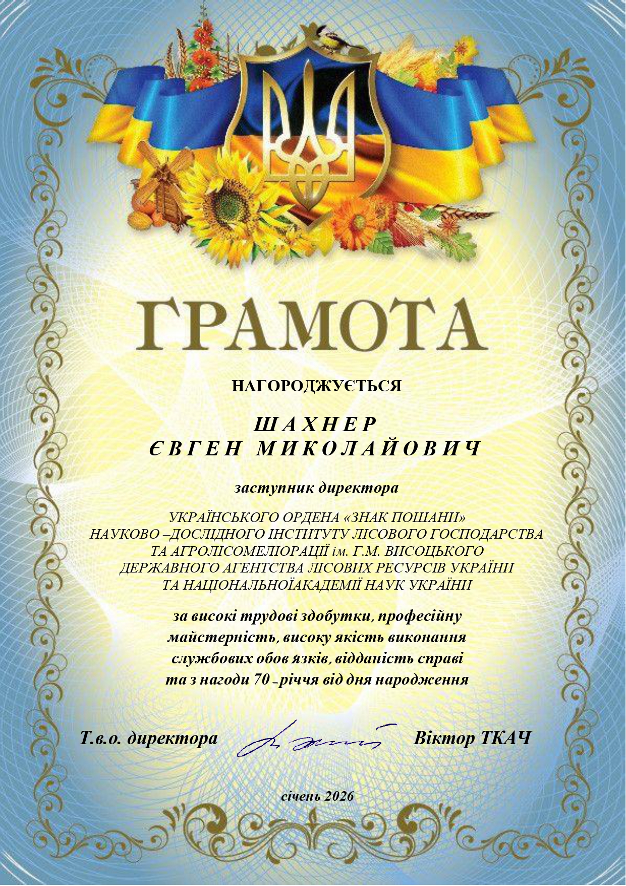 Колектив Інституту щиро вітає досвідченого фахівця, науковця й заступника директора УкрНДІЛГА Євгена Миколайовича Шахнера з 70-річчям!