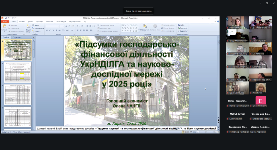 25 березня відбулося розширене засідання Вченої ради УкрНДІЛГА, на якому було підбито підсумки наукової та господарсько-фінансової діяльності за 2025 рік. У заході, який було проведено у форматі онлайн, взяли участь члени Вченої ради, адміністрація Інституту, керівники установ і підприємств дослідної мережі УкрНДІЛГА, а також науковці й працівники Інституту та підвідомчих УкрНДІЛГА структур.